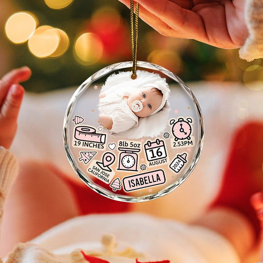 Custom Photo Baby First Christmas - Personalized Circle Glass Ornament