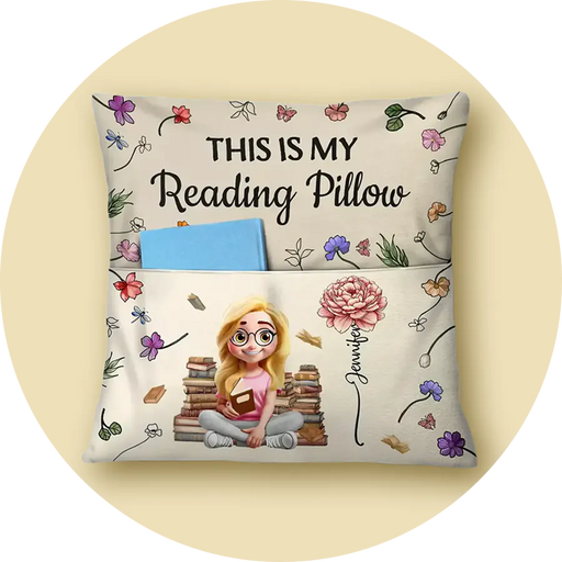 Top Market,Reading,Gift For Yourself,Gift For Women,Happy - My Reading Pillow Reading Girl With Birth Month Flower - Personalized Pocket Pillow