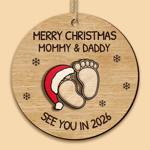 Christmas,New baby,New Mom,New Dad,Happy - Baby Expecting See You In 2026 - Personalized 2-Layered Wooden Ornament