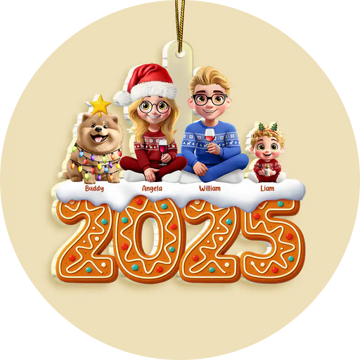 Family,Pet Lovers,Pet Mom,Pet Dad,Pet Couple,Dog Lovers,Dog Couple,Dog Mom,Dog Dad,Cat Lovers,Cat Mom,Cat Dad,Cat Couple,Happy,Christmas,Top Market - Christmas Gingerbread Family 3D Effect - Personalized Custom Shaped Acrylic Ornament