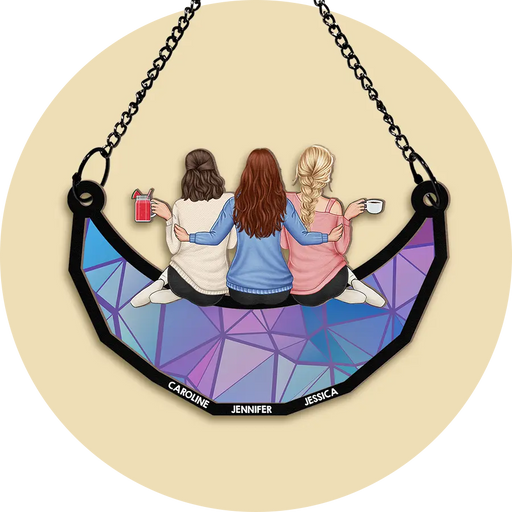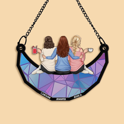 Besties Friends Sitting On The Moon - Personalized Window Hanging Suncatcher Ornament