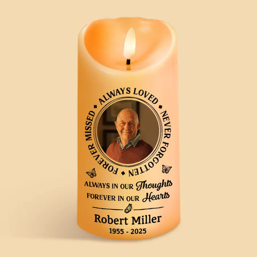 Custom Photo Memorial Always Loved Never Forgotten - Personalized Flameless LED Candle