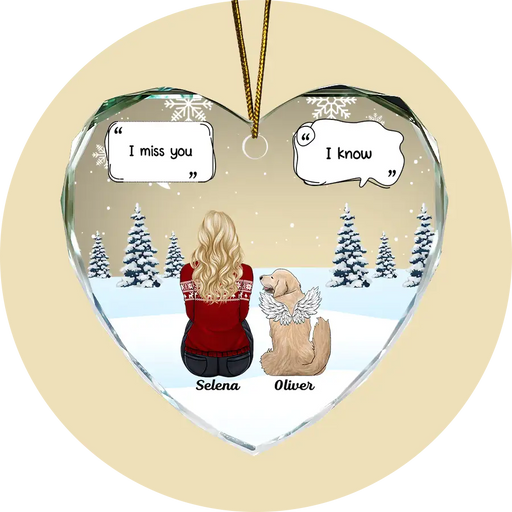 I Miss You Memorial Dog Cat - Personalized Heart Shaped Glass Ornament