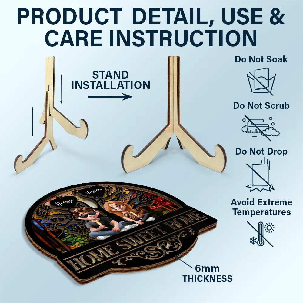 Home Sweet Home Family - Personalized 2-Layered Wooden Plaque With Stand
