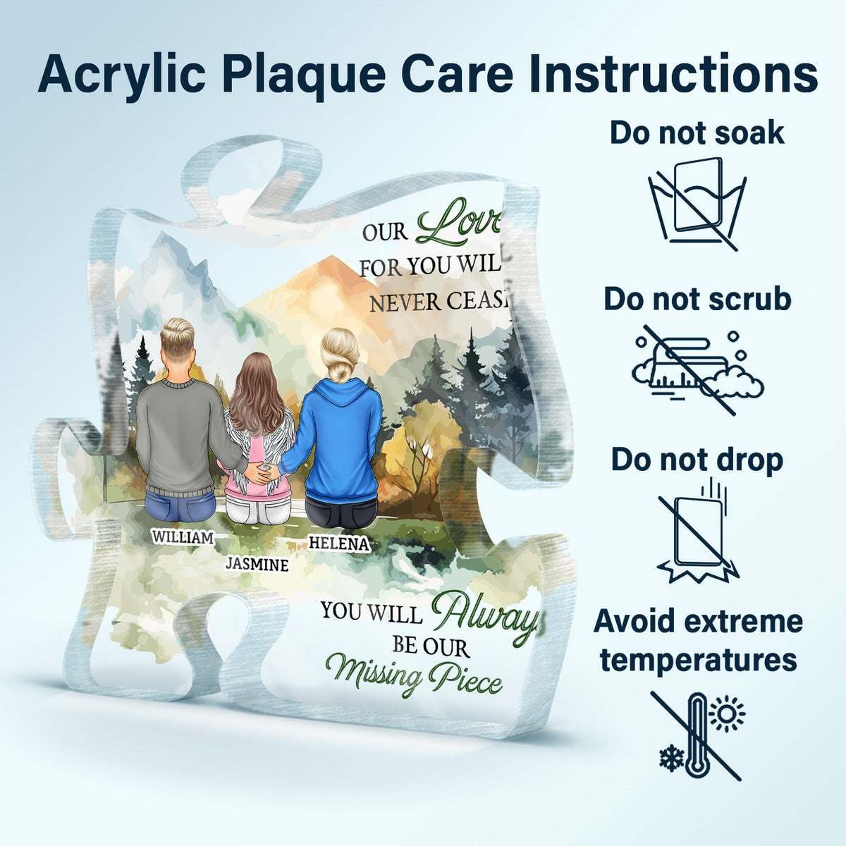 Our Love For You Will Never Cease - Memorial Gift For Family, Friend - Personalized Puzzle Shaped Acrylic Plaque