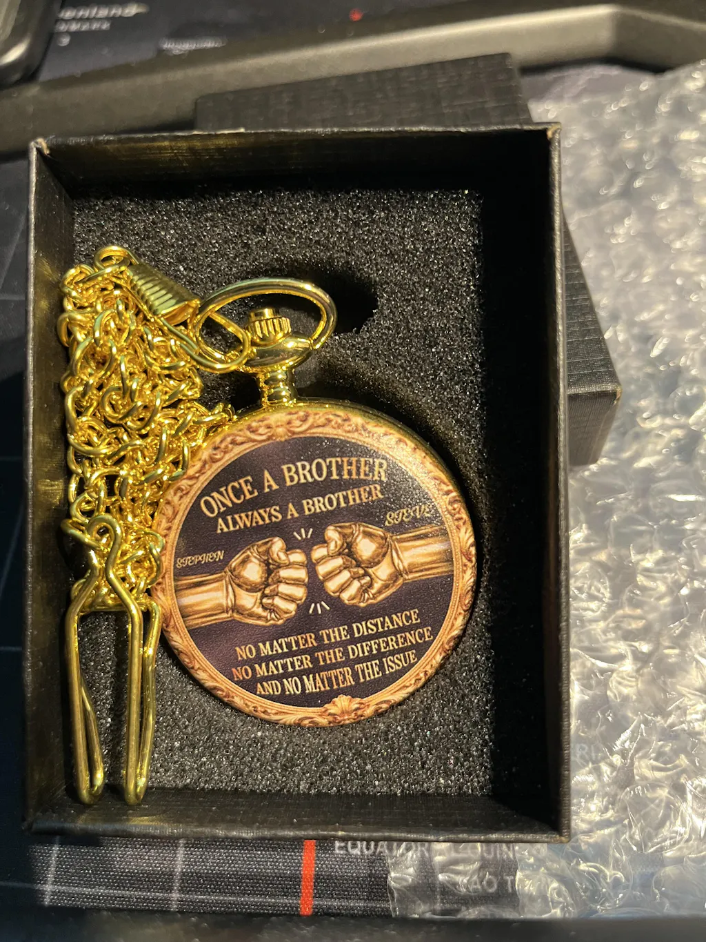 Blending vintage charm with deep sentiment, this pocket watch is a treasured symbol of brotherhood that lasts forever.