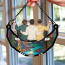 Besties Friends Brothers Sisters Sitting On The Moon - Personalized Window Hanging Suncatcher Ornament