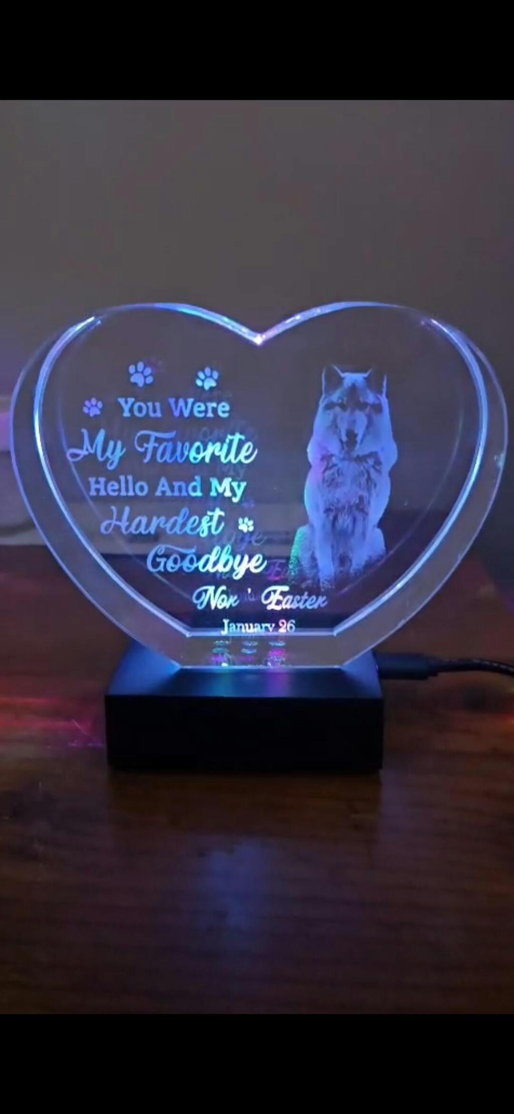 A beautiful addition to any space, this memorial crystal heart reflects light and love, making every glance a soft moment of reflection and remembrance.