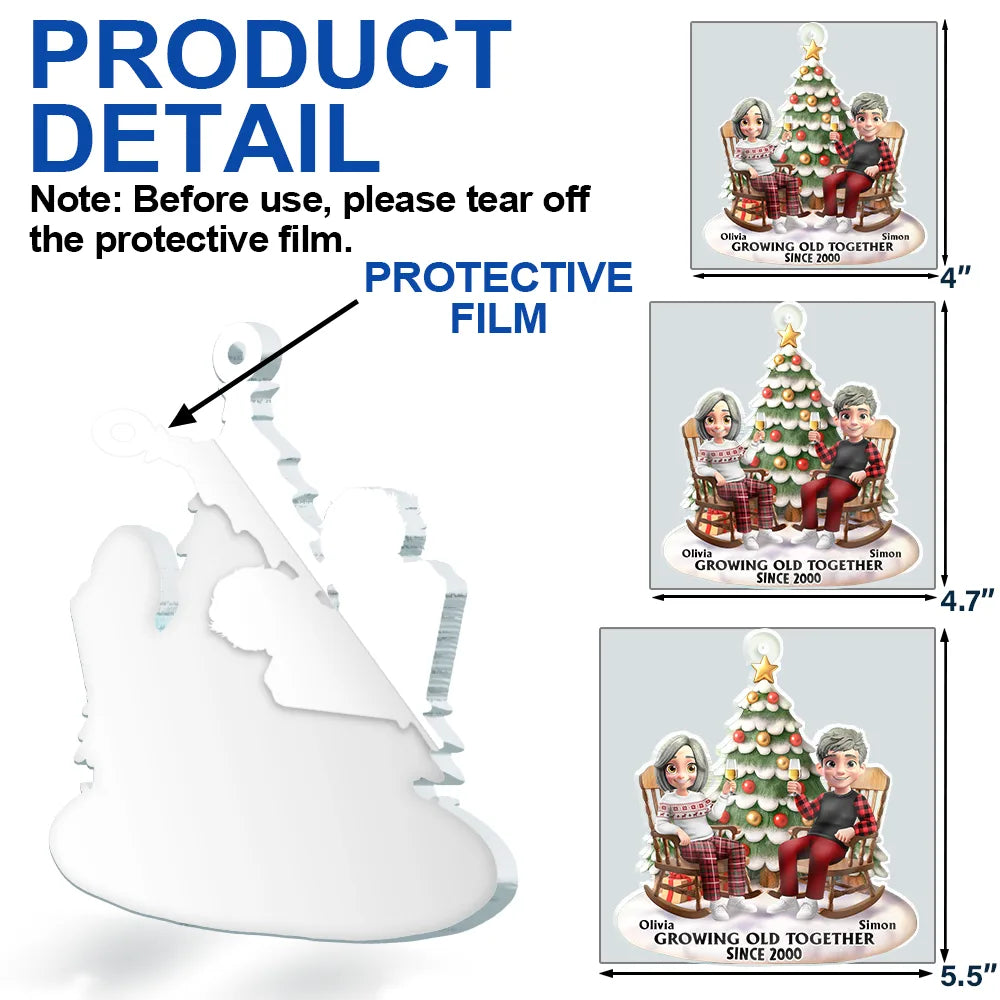 Make your holidays more romantic with the Growing Old Together 3D Effect Couple Sitting - Personalized Custom Shaped Acrylic Ornament. This meaningful and heartfelt piece is a thoughtful gift for couples, husbands, wives, boyfriends, or girlfriends on Christmas, Birthdays, Anniversaries, Mother’s Day, Father’s Day, Thanksgiving, or Valentine’s Day.