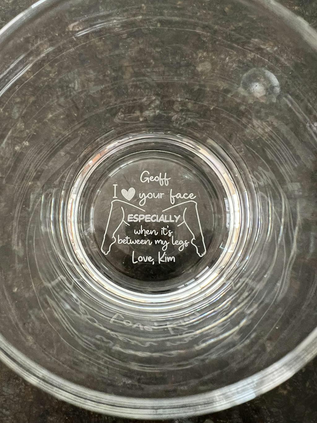 The "I Love Your Face Especially When It's Between My Legs - Personalized Engraved Whiskey Glass" is the ultimate mix of humor and romance, making it an ideal gift for couples who love to laugh together. Whether you’re shopping for your husband or boyfriend, this funny and unique glass adds a cheeky touch to your evenings. Engraved with a hilarious message, it’s perfect for those who appreciate a good gag gift with a playful twist.
