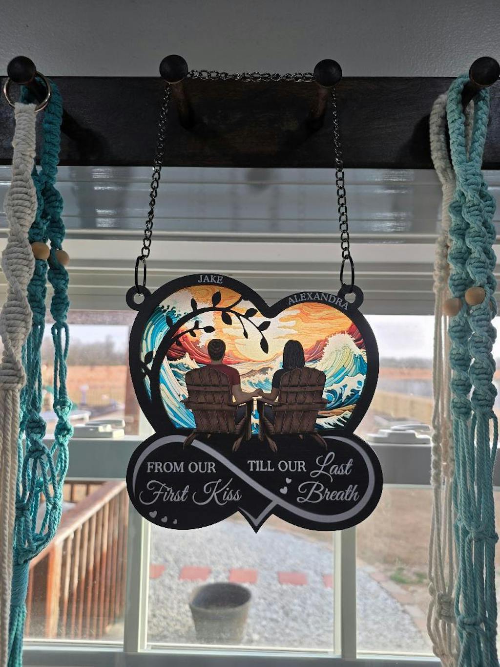 Featuring a heartfelt message and a custom design, this ornament adds a sentimental touch to any window or home décor. It creates a captivating display of light and shadow, reminding you of the unbreakable connection you share with your loved ones. Perfect for hanging in the living room, bedroom, or any favorite spot, it serves as a constant reminder of your enduring commitment and affection.