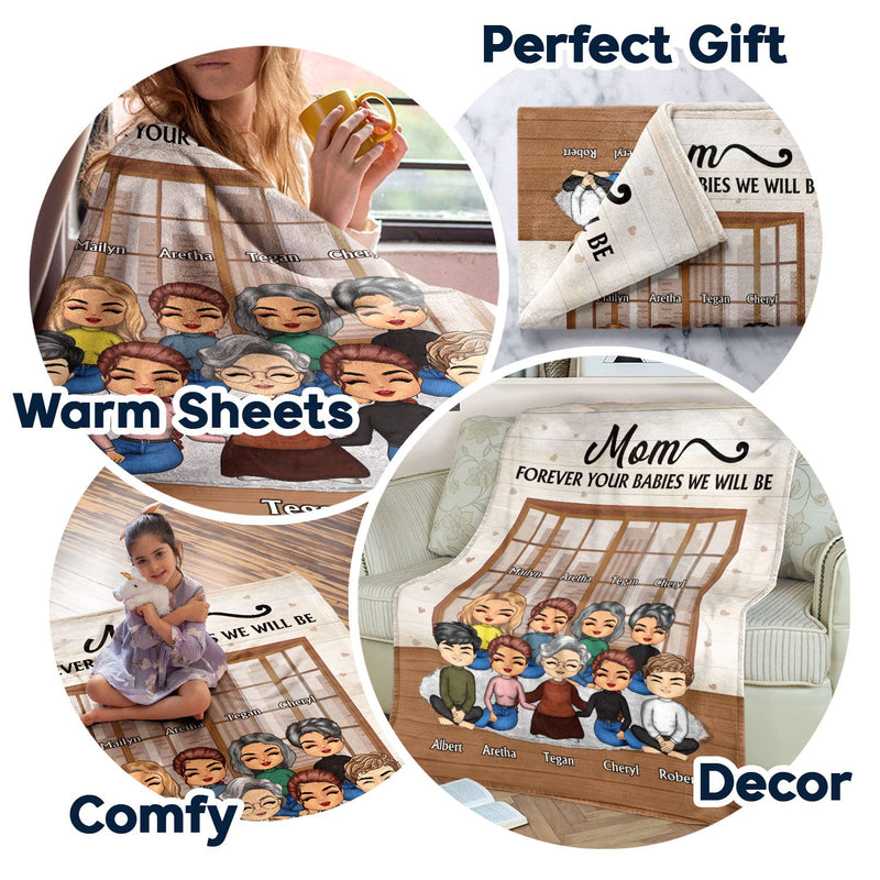 Family Mother & Children Forever Linked Together - Personalized Custom Fleece Blanket