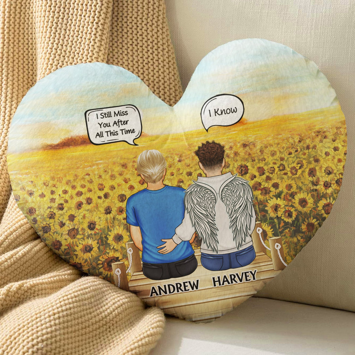 I Miss You I Know - Memorial Gift For Family, Friends, Siblings - Personalized Heart Shaped Pillow
