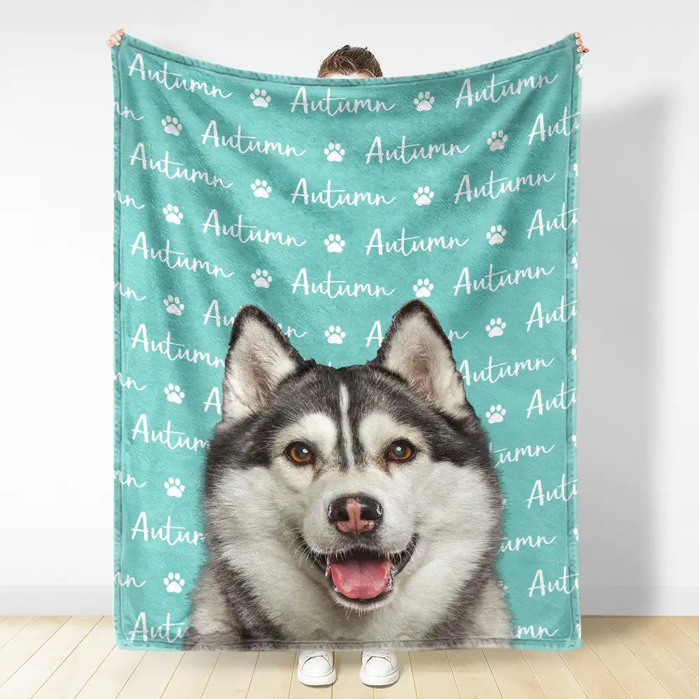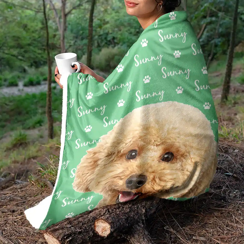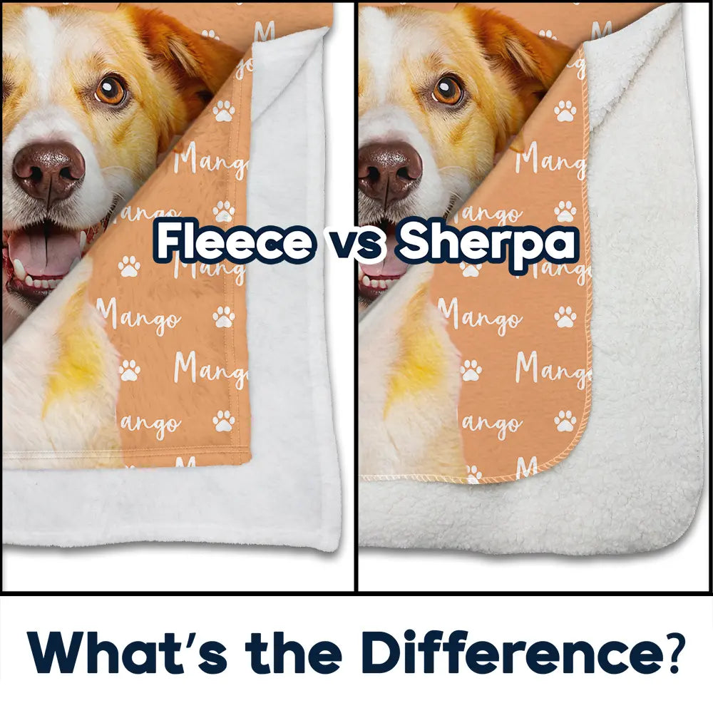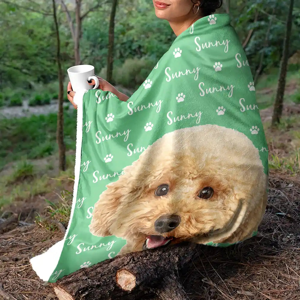 Custom Photo Dog Cat Face With Name - Personalized Fleece Blanket, Sherpa Blanket