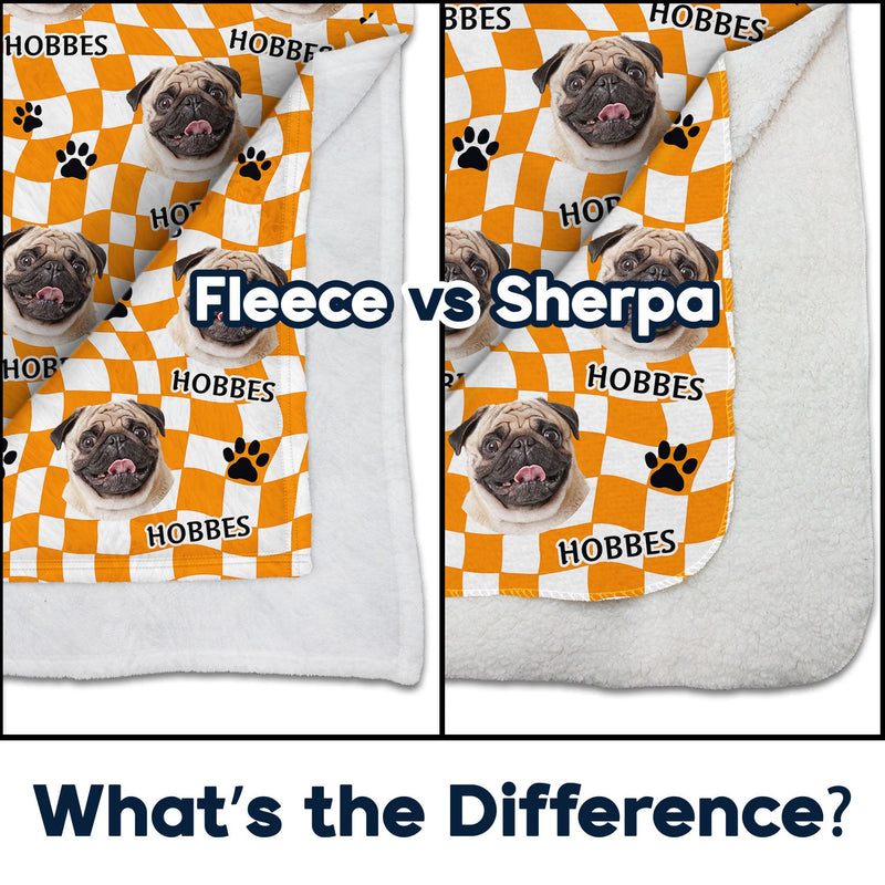 Custom Photo Dog Cat Retro Checkered Background - Gift For Pet Lovers - Personalized Fleece Blanket