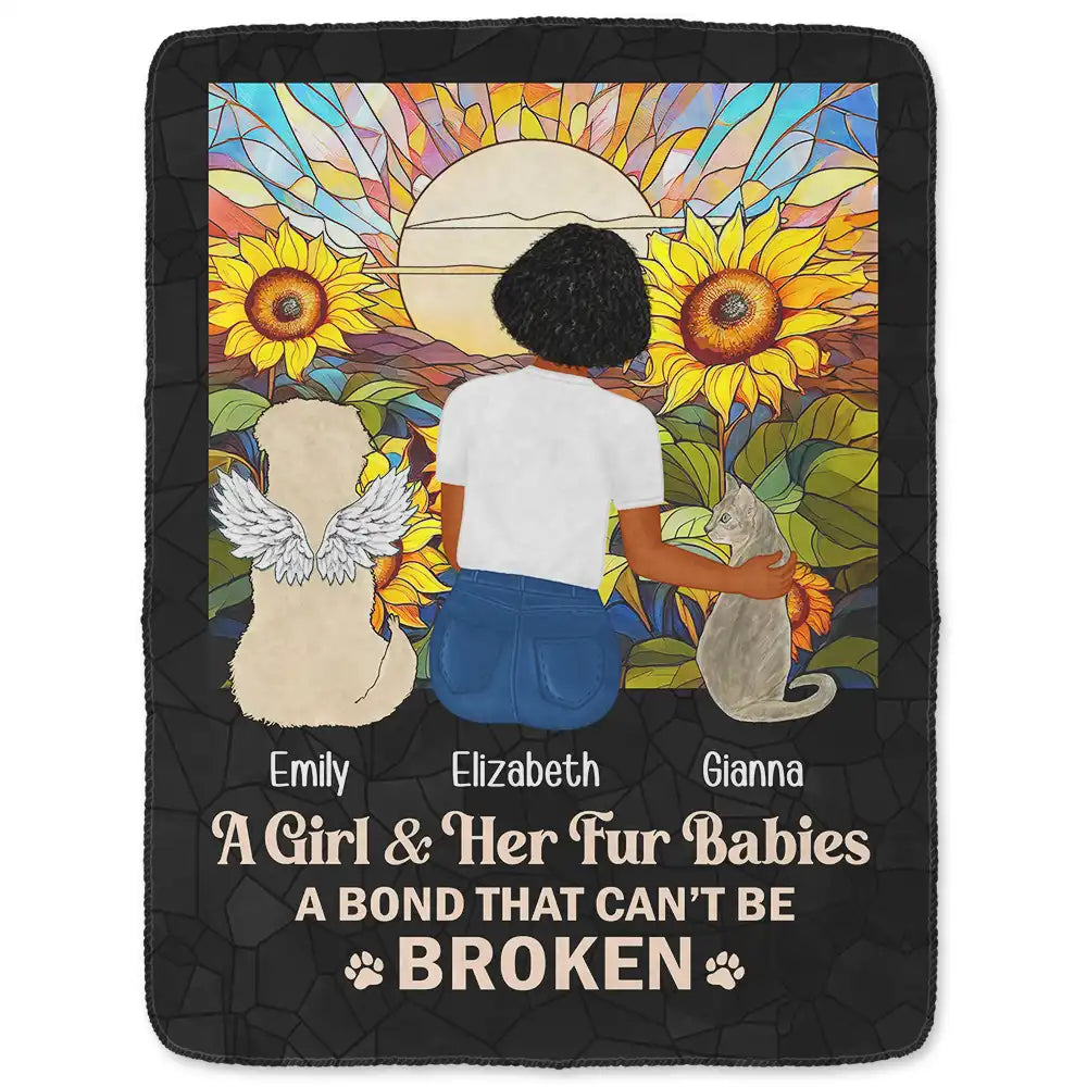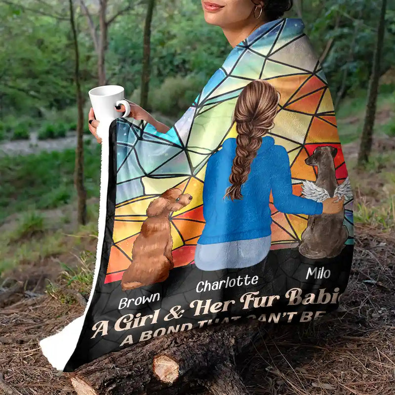 Flower Field A Girl And Her Dog And Cat - Personalized Fleece Blanket, Sherpa Blanket