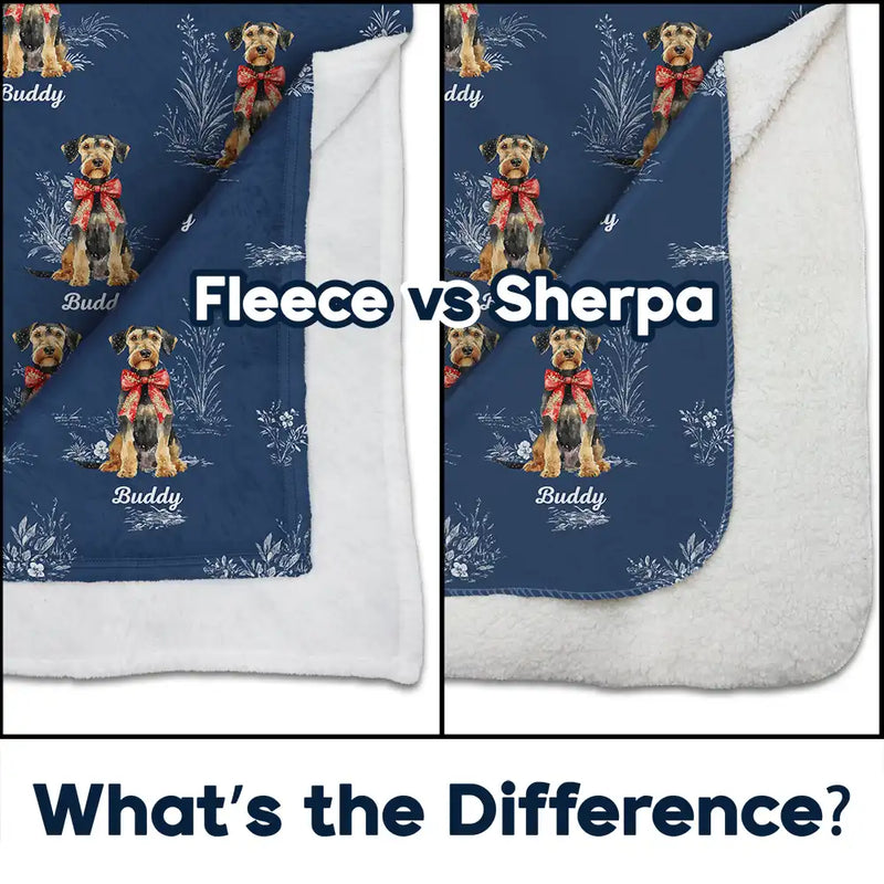 Toile De Jouy Red Bow Dog - Personalized Fleece Blanket, Sherpa Blanket