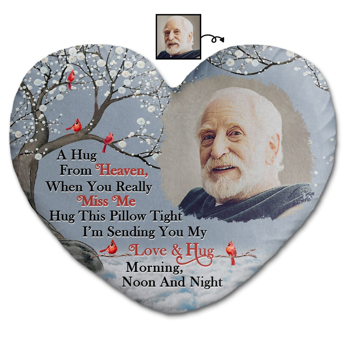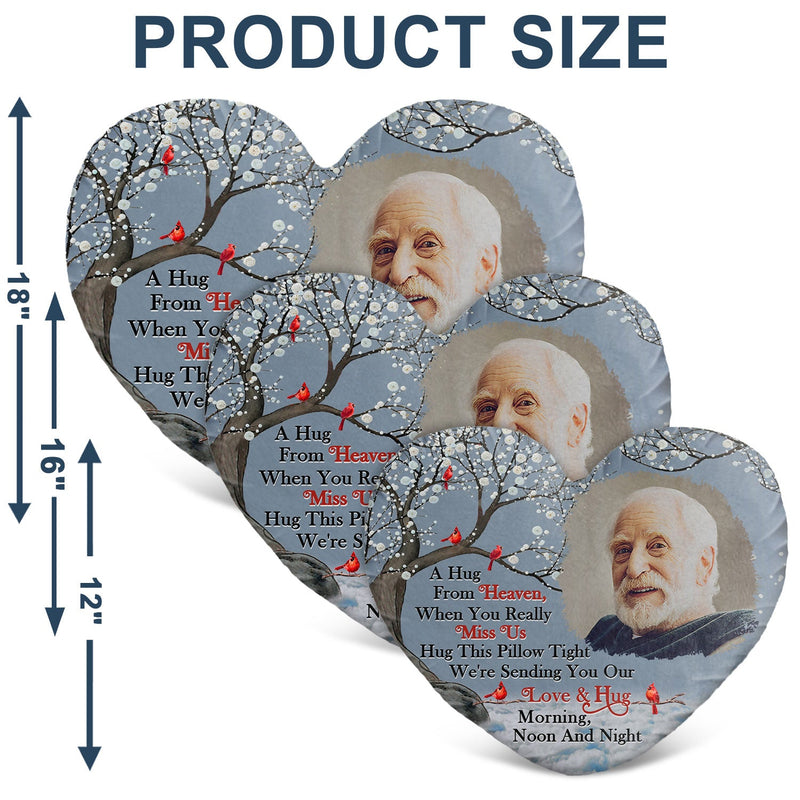 Custom Photo A Hug From Heaven - Memorial Gift For Family, Friends - Personalized Heart Shaped Pillow