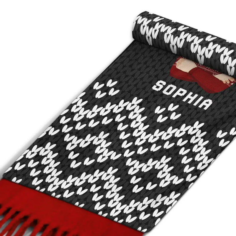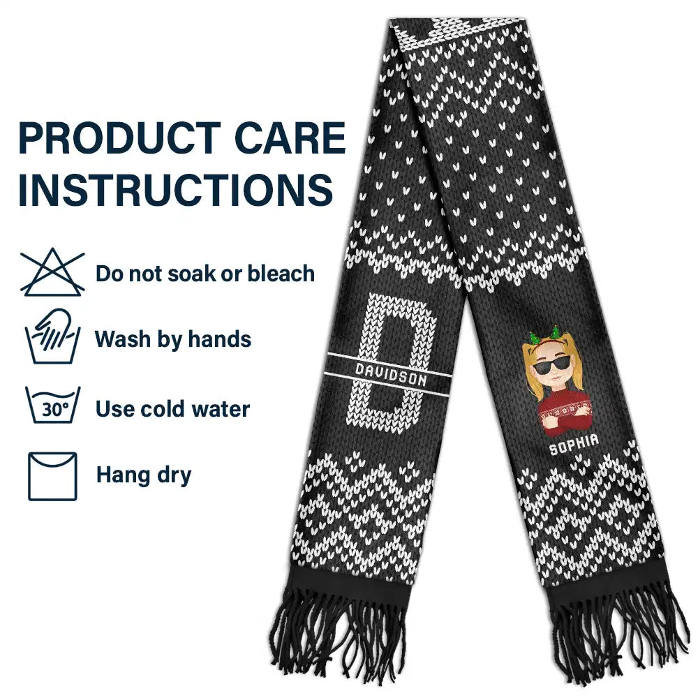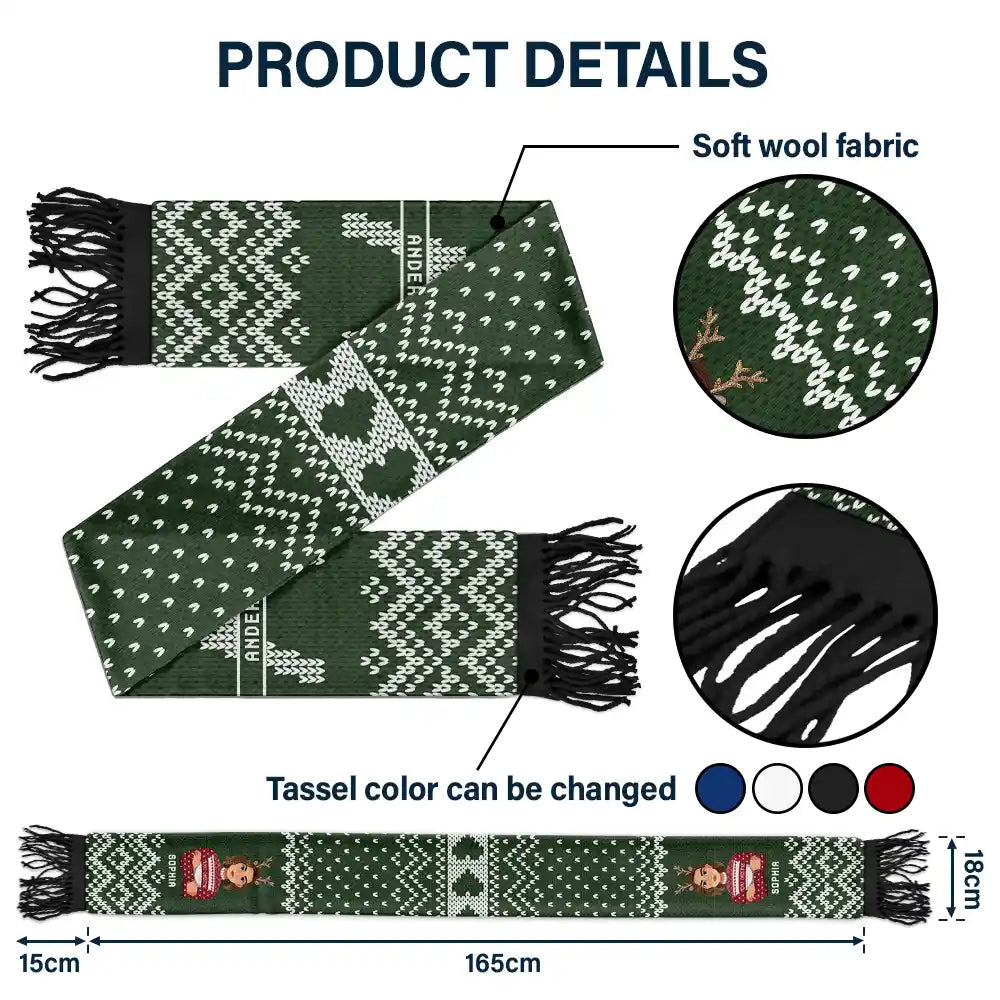 Monogram Christmas Family - Personalized Wool Scarf With Tassel