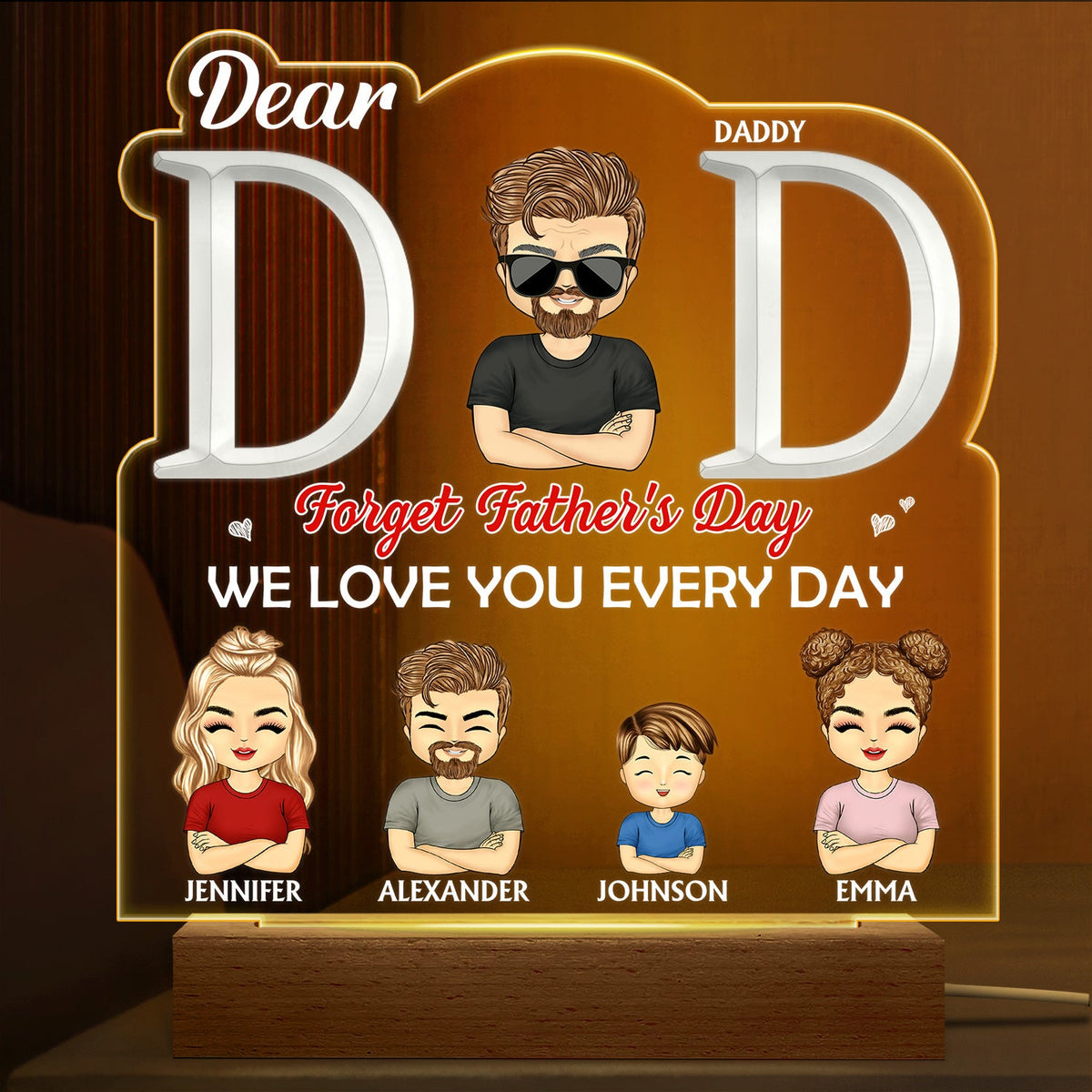 Dad We Love You Every Day - Birthday Gift For Father, Grandpa, Family - Personalized Custom 3D Led Light Wooden Base