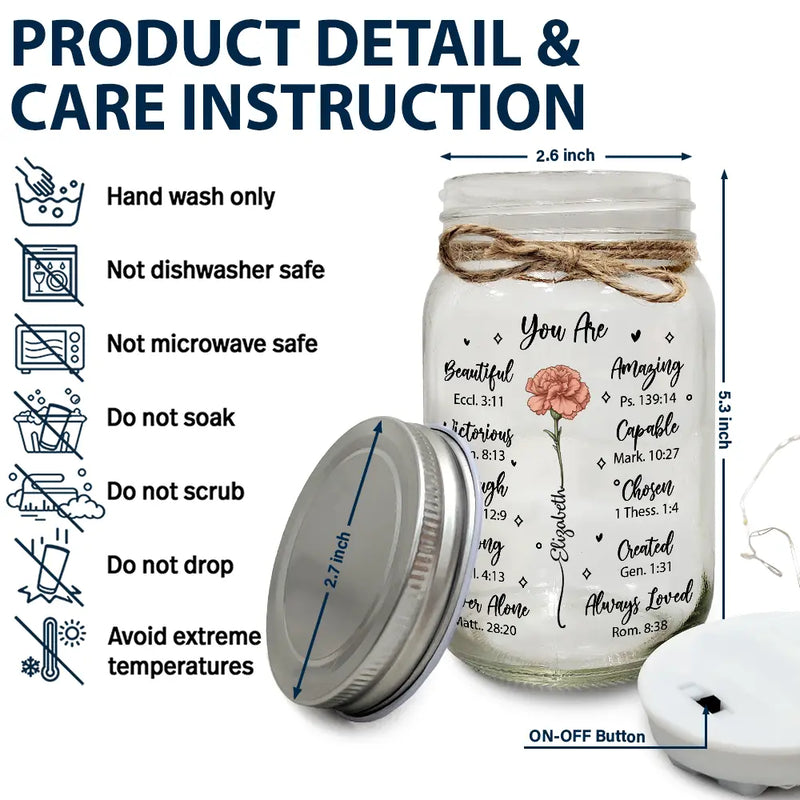 You Are Beautiful Victorious Woman Birth Month Flower - Personalized Mason Jar Light