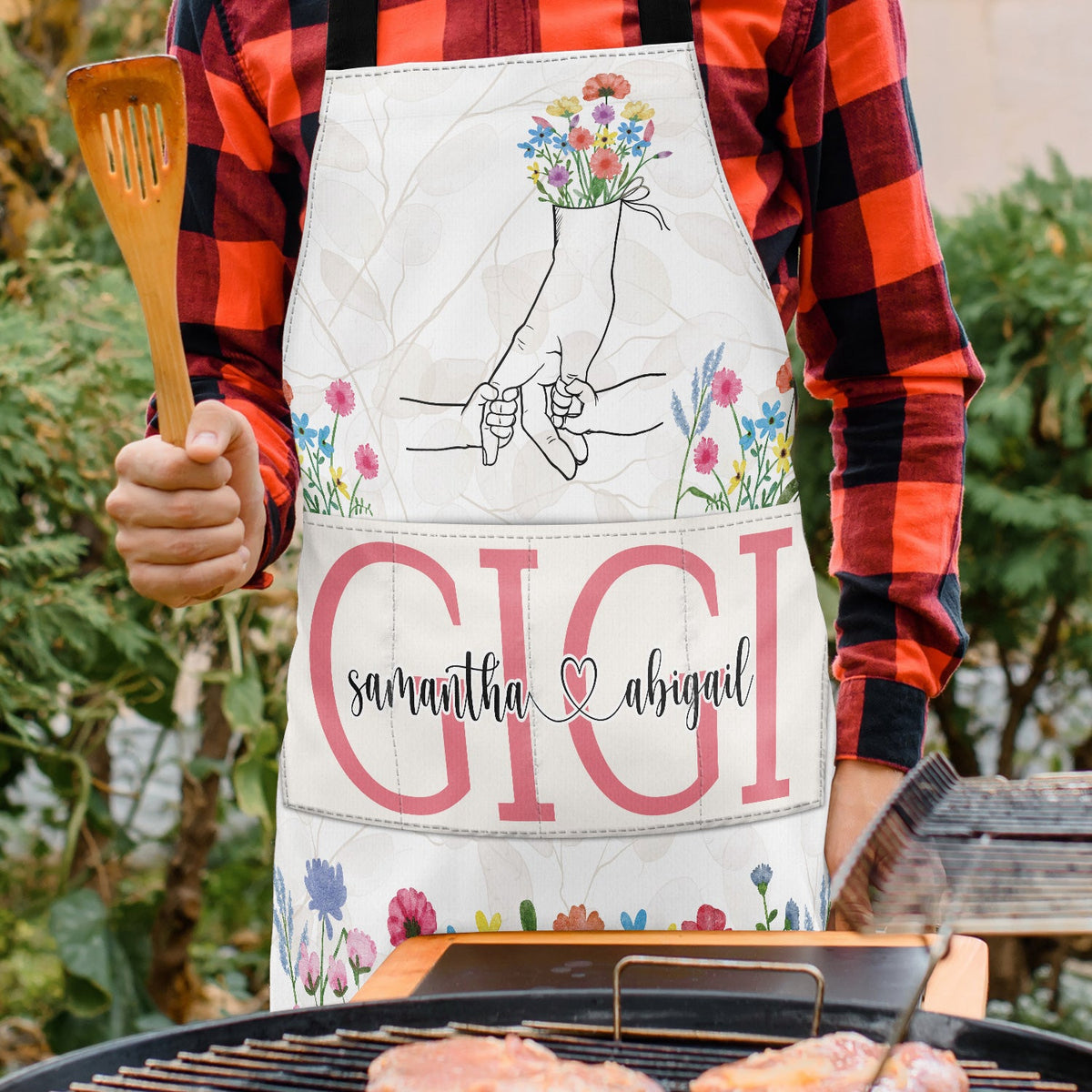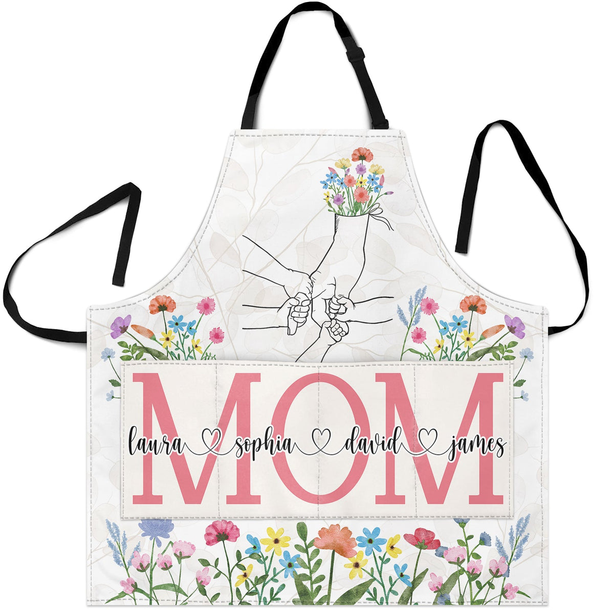 Hand In Hand Wild Flowers - Birthday, Loving Gift For Mom, Nana - Personalized Apron