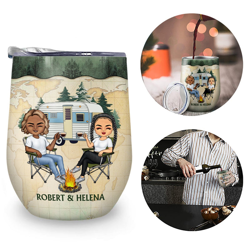 Husband And Wife Camping Partners For Life - Anniversary, Birthday Gift For Spouse, Husband, Wife, Boyfriend, Girlfriend, Campers - Personalized Custom Wine Tumbler