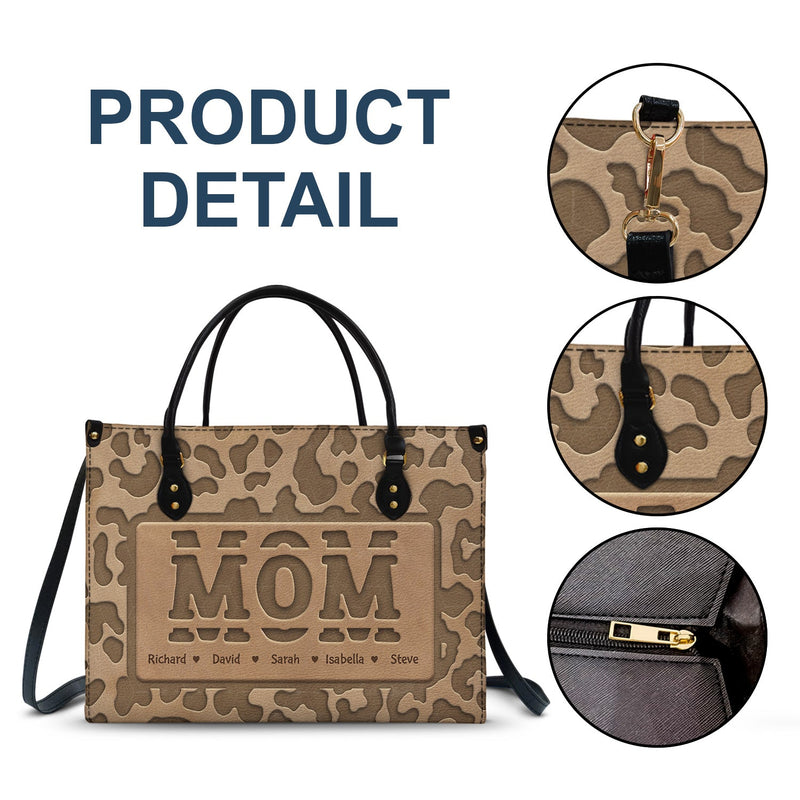 Mom Grandma Title Leopard Pattern - Birthday, Loving Gift For Grandmother, Mother, Mom - Personalized Leather Bag