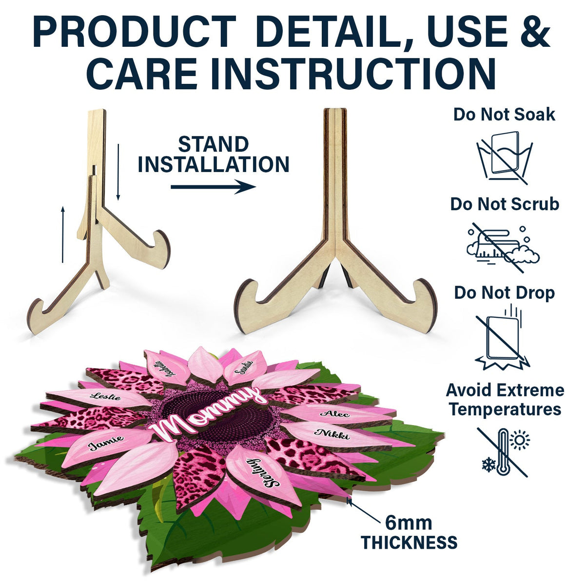 Nana, Mom, Auntie Family Sunflower - Birthday, Loving Gift For Mother, Grandma, Grandmother - Personalized 2-Layered Wooden Plaque With Stand