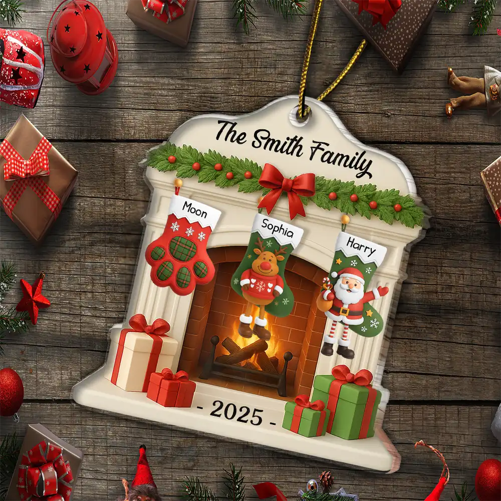Christmas Fireplace And Stockings Family - Personalized Custom Shaped Acrylic Ornament