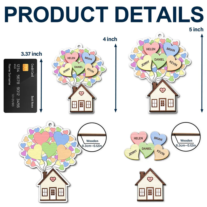 Heart Balloon House For Family - Personalized 2-Layered Wooden Ornament