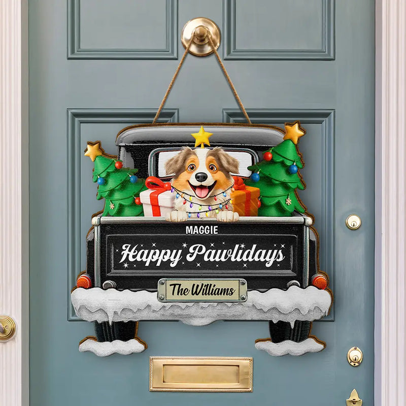 Meowy Christmas Christmas Red Truck - Personalized Custom Shaped Wood Sign