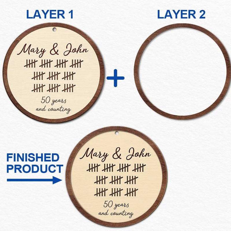 5th Anniversary Wooden Anniversary Years And Counting - Personalized 2-Layered Wooden Ornament