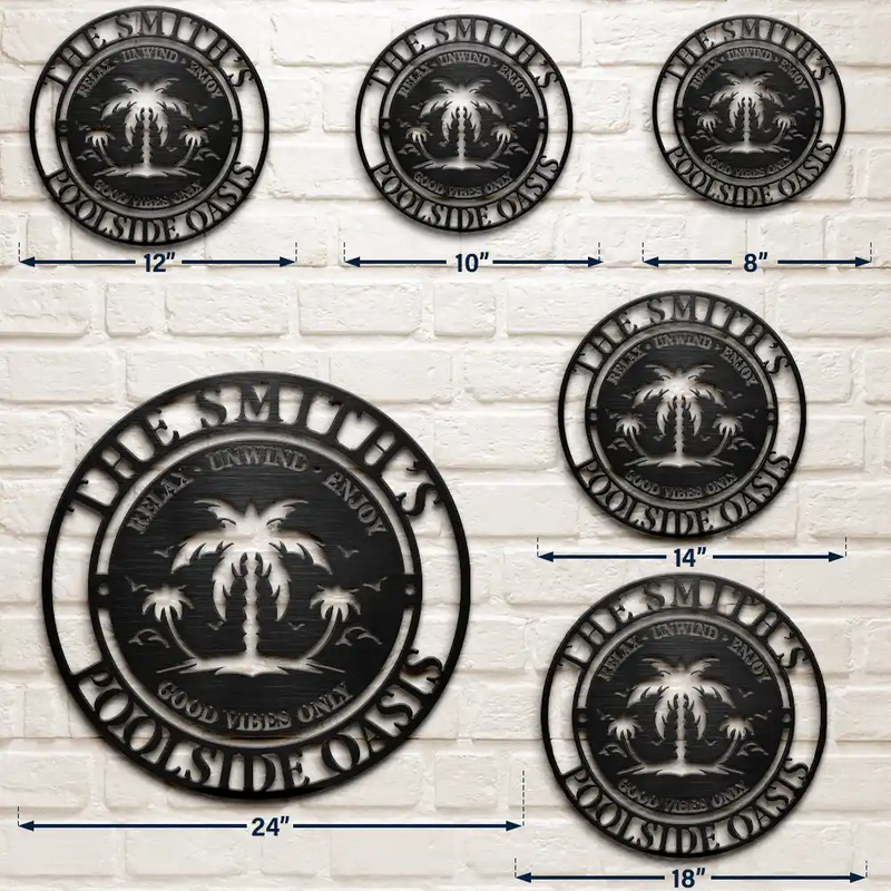 This high-quality metal sign adds a stylish, customized touch to any pool area, patio, or outdoor oasis. With your family name cut out in sleek metal, it becomes a true centerpiece of hospitality and pride.