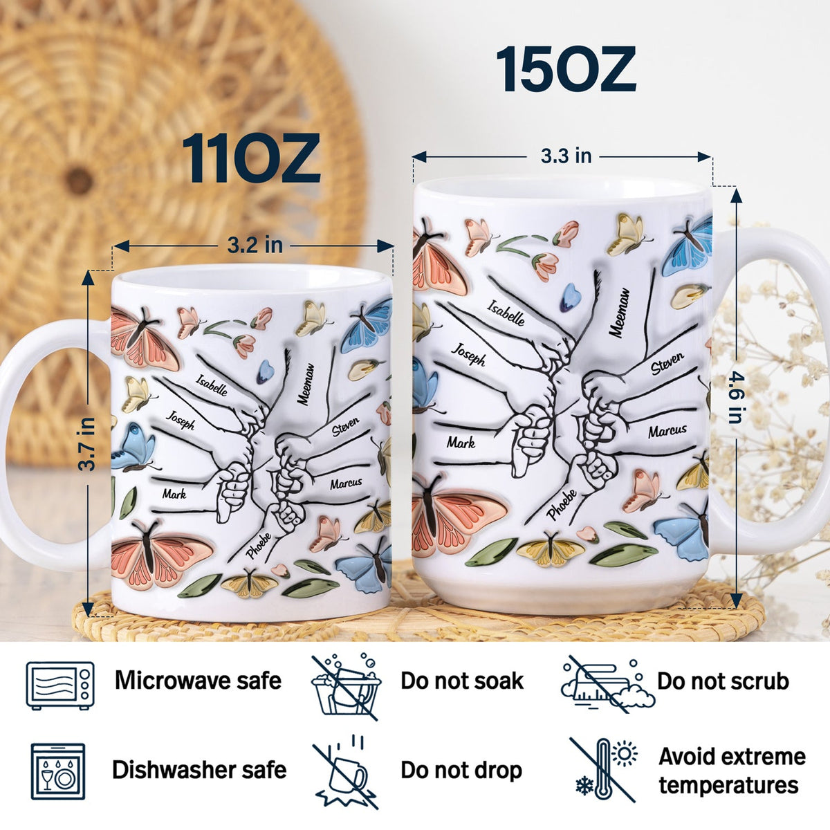 Hand In Hand, I Will Always Protect You Butterflies - Gift For Mom, Grandma - 3D Inflated Effect Printed Mug, Personalized White Edge-to-Edge Mug