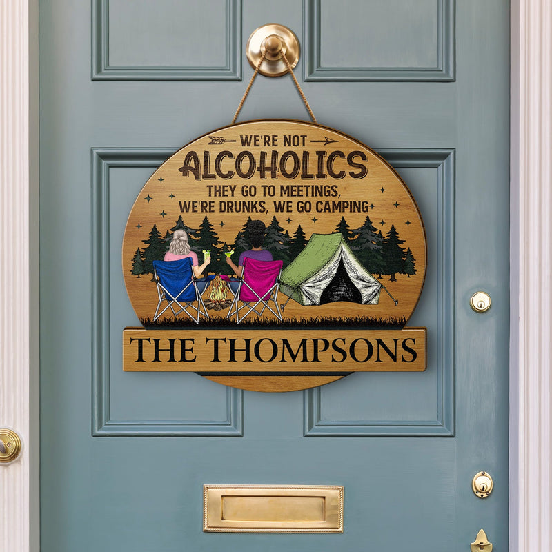 Camping Couple Backside Husband & Wife Camping Partners For Life - Anniversary, Vacation, Funny Gift For Campers - Personalized Custom Shaped Wood Sign