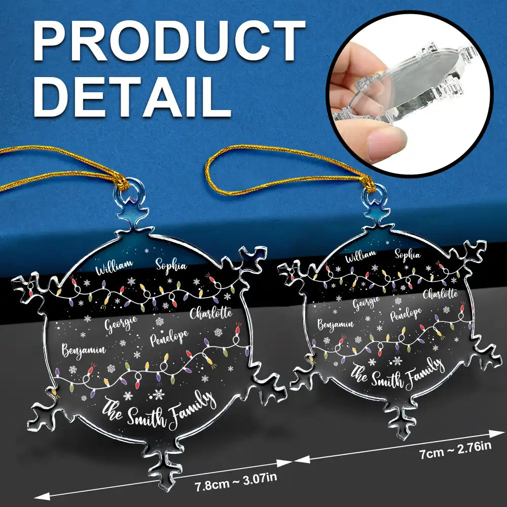 Christmas Family Together With Names And Led Lights - Personalized Snowflakes Shaped Glass Ornament