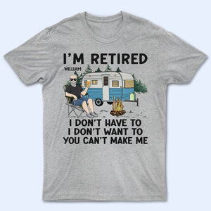 I'm Retired I Don't Want To - Retirement Gift For Camping Lovers, Dad, Mom, Grandpa, Grandma - Personalized T Shirt
