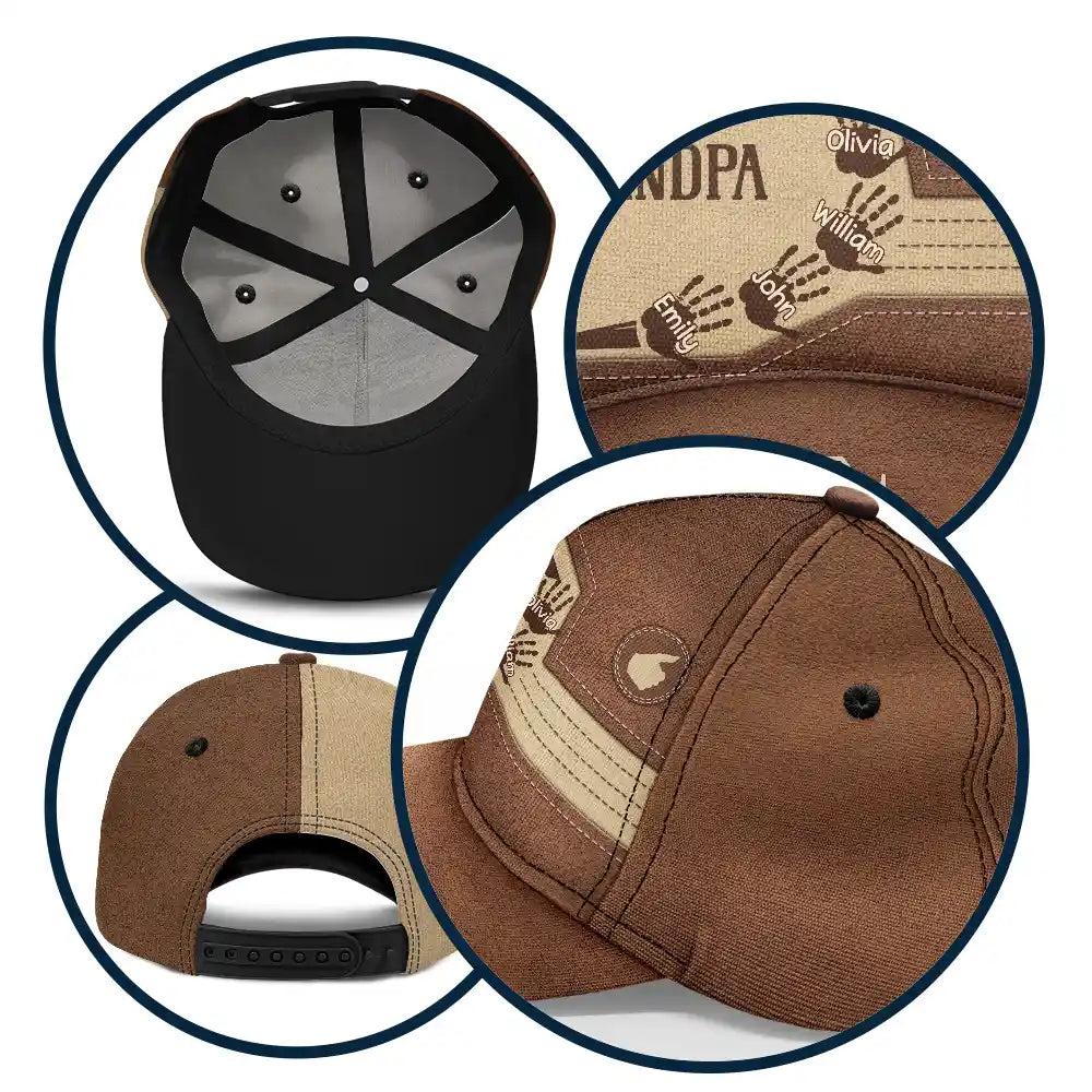 Grandpa Papa Dad Father Sweetheart Kid Grandkid Handprints - Personalized Classic Cap