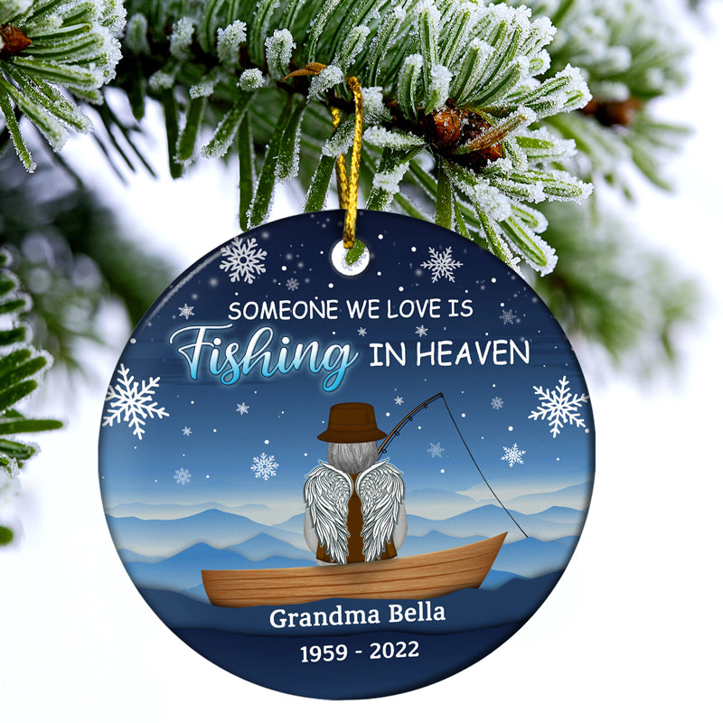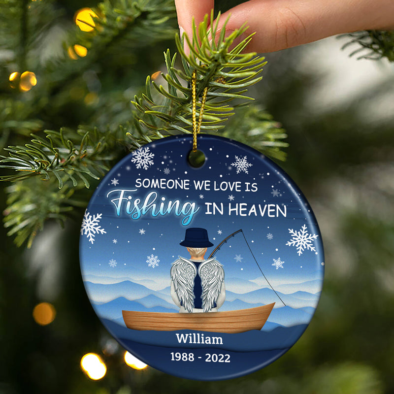 Gone Fishing In Heaven Christmas - Family Memorial Gift - Personalized Custom Circle Ceramic Ornament