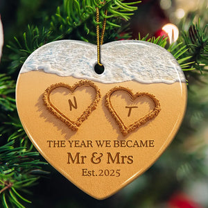 The Year We Became Mr & Mrs Initial Letter - Personalized Heart Ceramic Ornament