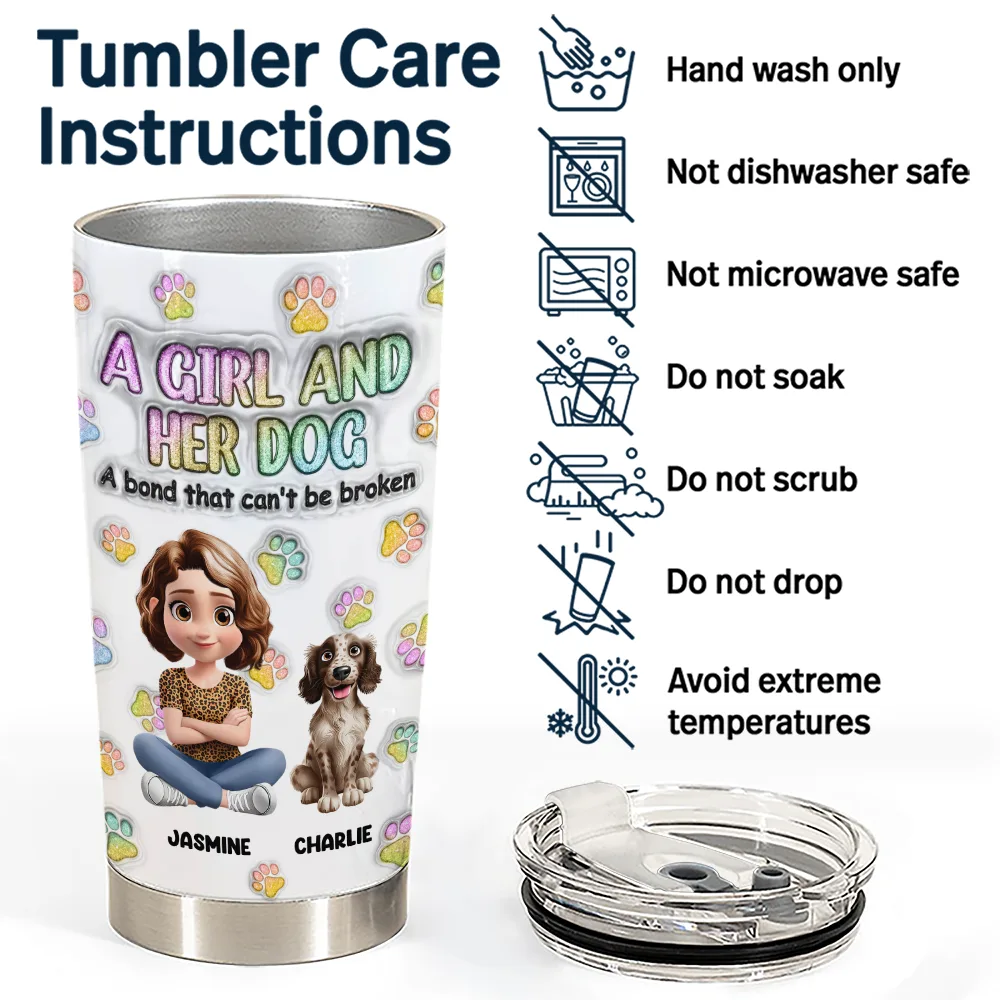 A Girl And Her Dog - 3D Inflated Effect Printed Tumbler, Personalized Tumbler