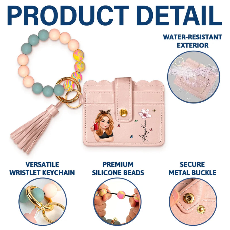Birth Month Flower Turban Woman - Personalized Keychain Wristlet Leather Wallet