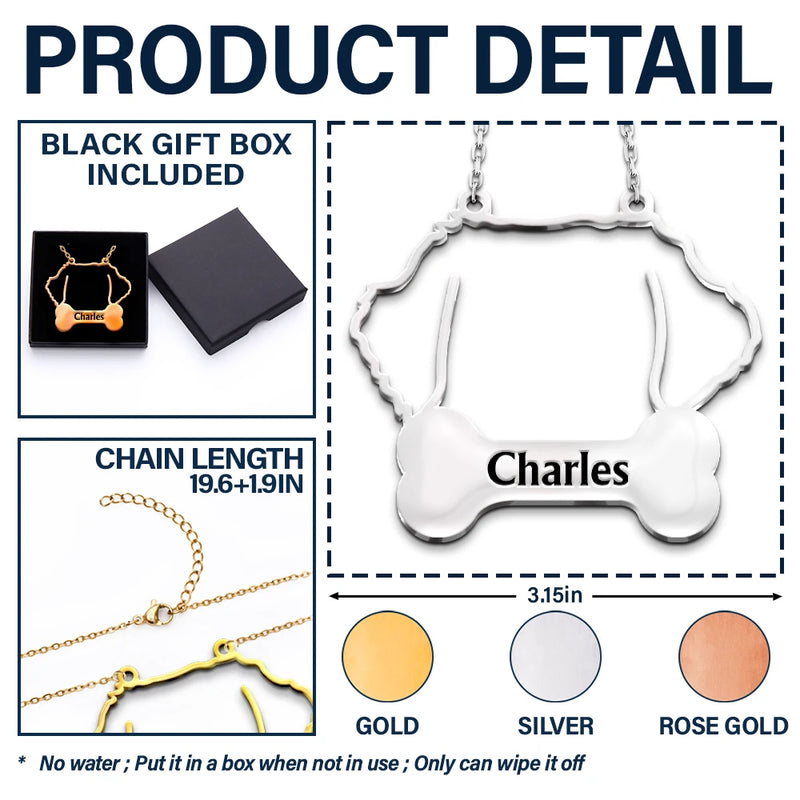 Dog Cat Face Line Art With Name - Personalized Letter Necklace
