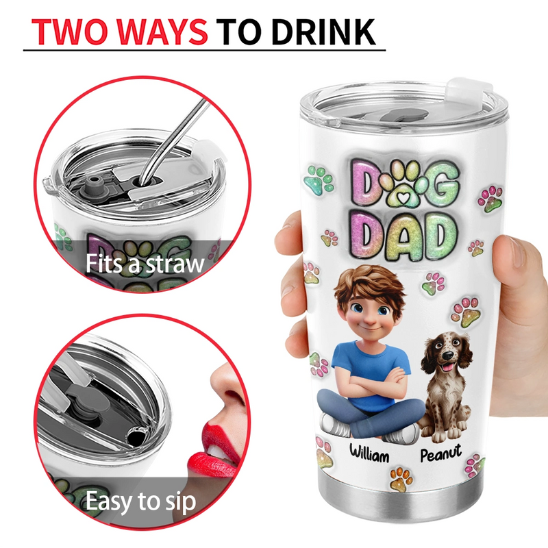 Celebrate your furry friendship with the Dog Mom Dog Dad Sitting - 3D Inflated Effect Printed Tumbler, Personalized Tumbler, a thoughtful and unique gift for Pet Lovers, Dog Moms, and Dog Dads. Perfect for Christmas, Birthdays, Valentine’s Day, Mother’s Day, or Father’s Day, it’s the ultimate drinkware for anyone who adores their four-legged family.