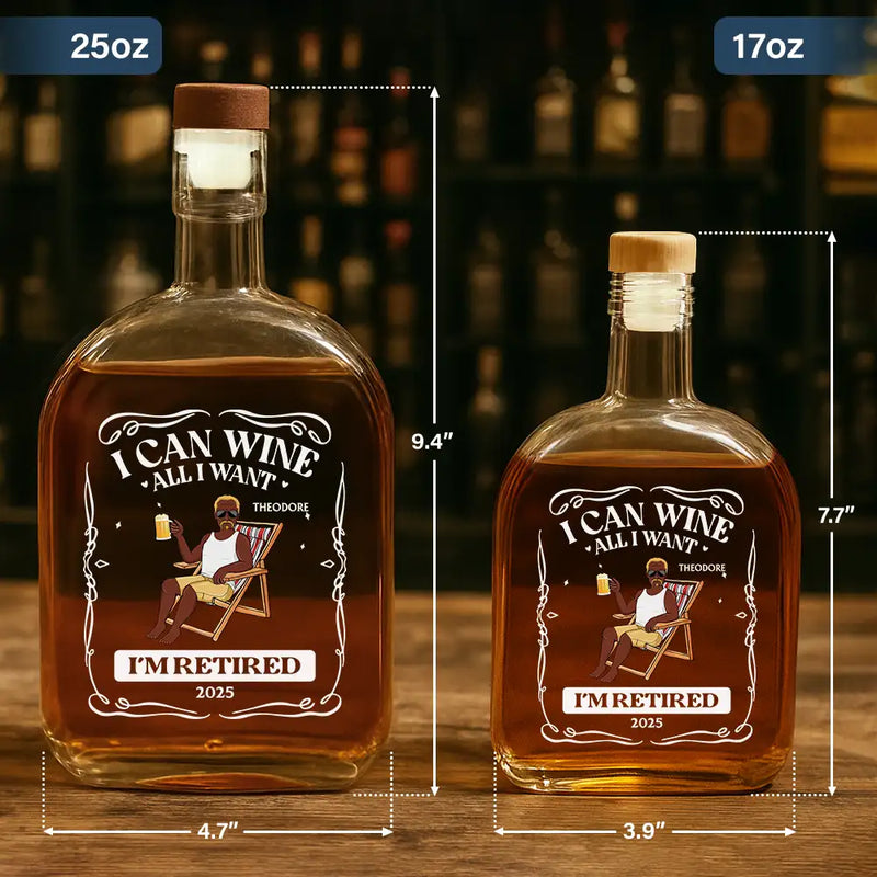 I Can Wine All I Want I'm Retired - Personalized Whiskey Bottle