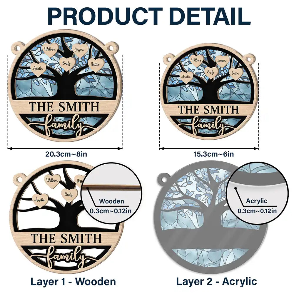 Family Heart Tree - Personalized Window Hanging Suncatcher Ornament