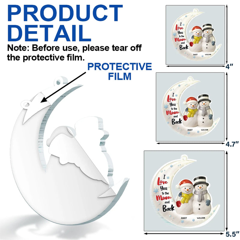 Love You To The Moon Couple Snowman Ceramic Effect - Personalized Custom Shaped Acrylic Ornament