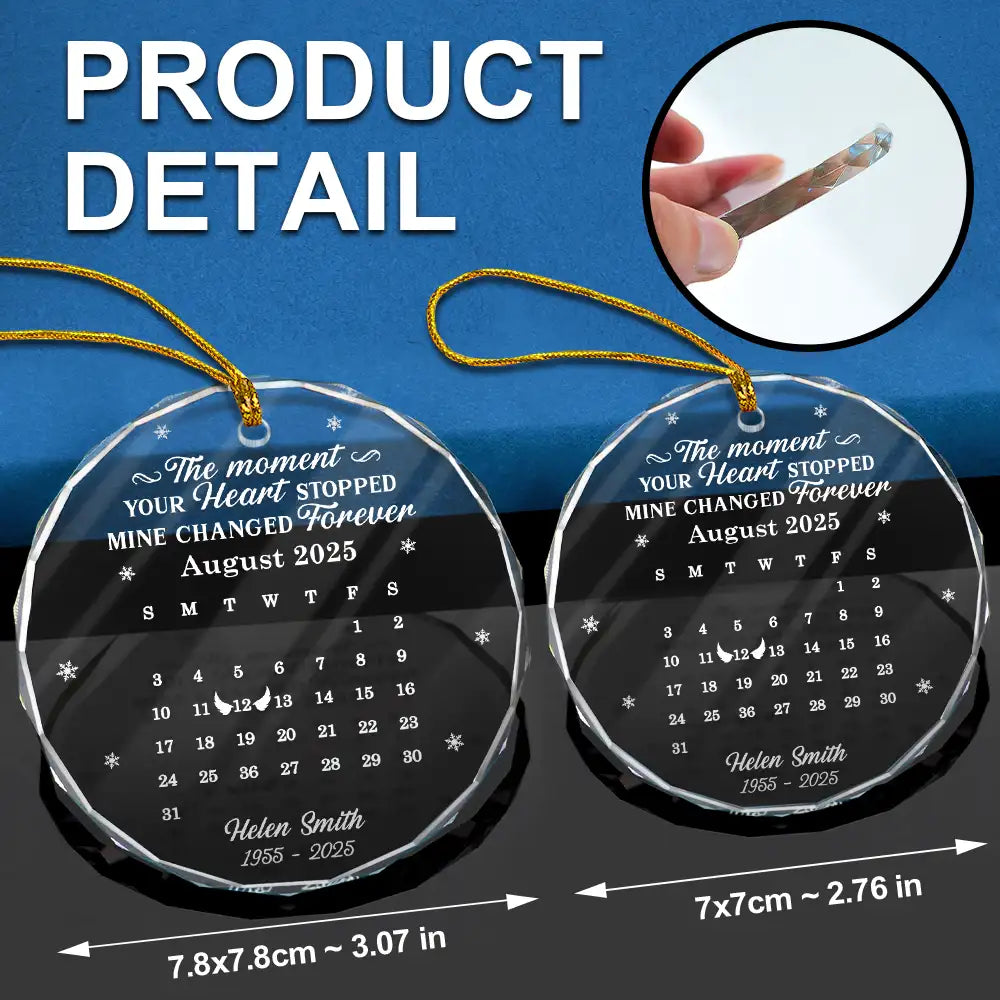 Calendar The Moment Your Heart Stopped Memorial - Personalized Circle Glass Ornament