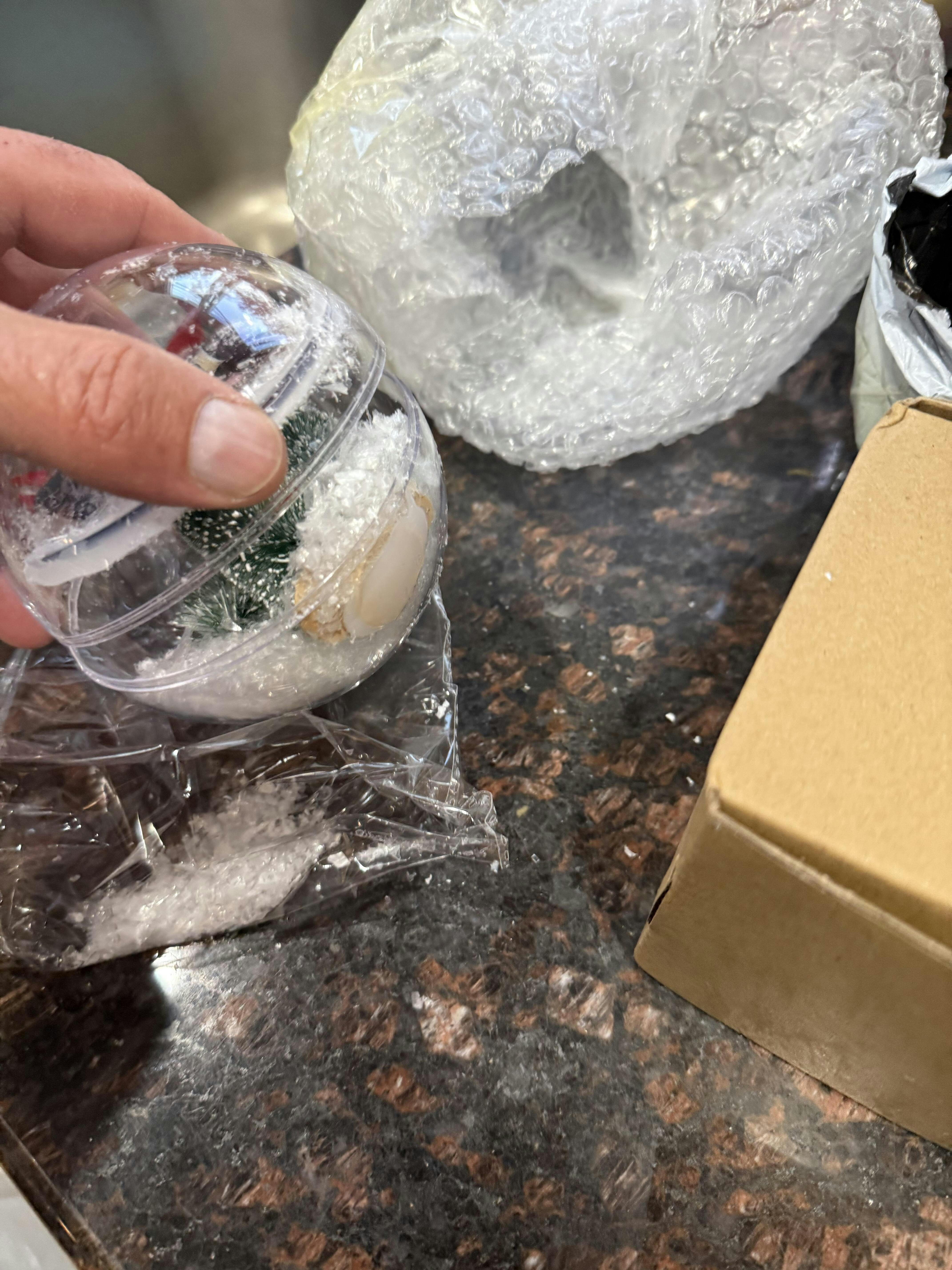 • Material: Plastic (ball), acrylic (insert), snow glitter.